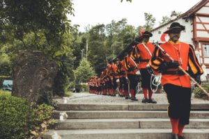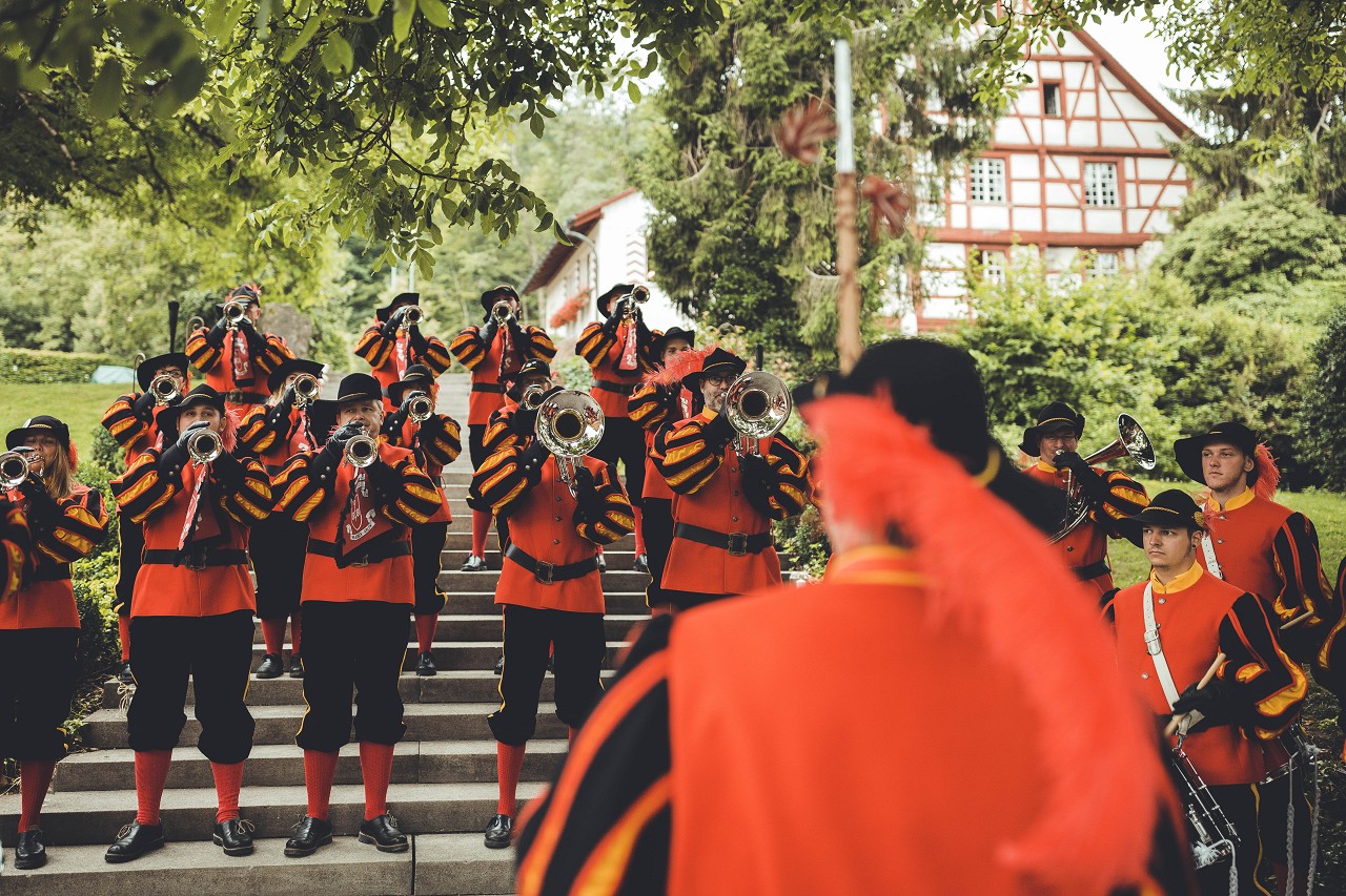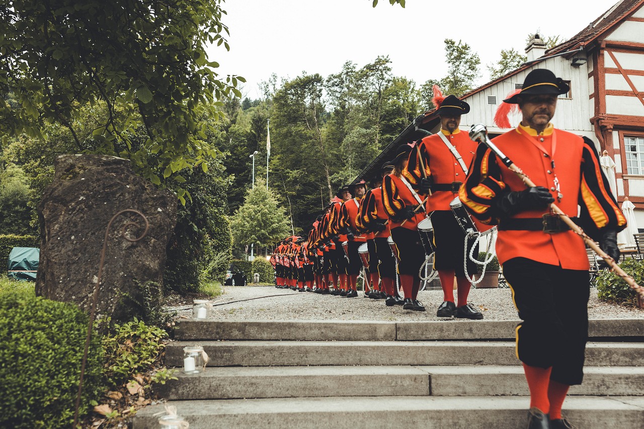 …war schwierig zu entscheiden was unserem Hubert Thanner schwerer fiel, die Tochter zum Altar zu führen oder nicht mitspielen zu dürfen. Letzlich war es dem Fanfarenzug Rielasingen-Arlen eine Ehre an der Hochzeit von Isabel und Marc aufspielen zu dürfen. Wunderschön am Rhein gelegen, in Diesenhofen (CH) war die Location und hätte nicht der Regen eingesetzt…hätten die Schweizer wohl noch an die Tanke fahren müssen um Bier nachzuordern.